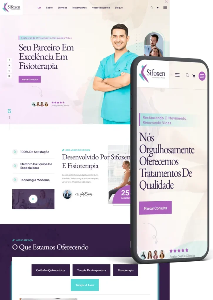 Seu site impecável em qualquer tela. Garanta que seus pacientes tenham a melhor experiência, seja conhecendo seus tratamentos no computador ou agendando uma consulta pelo celular.